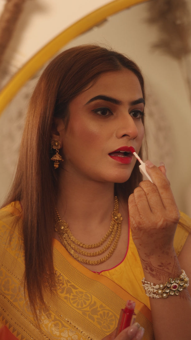 Jashn means celebration, and this shade captures that spirit in every swipe. It is a bold, true red that lights up every skin tone with confidence and joy.
